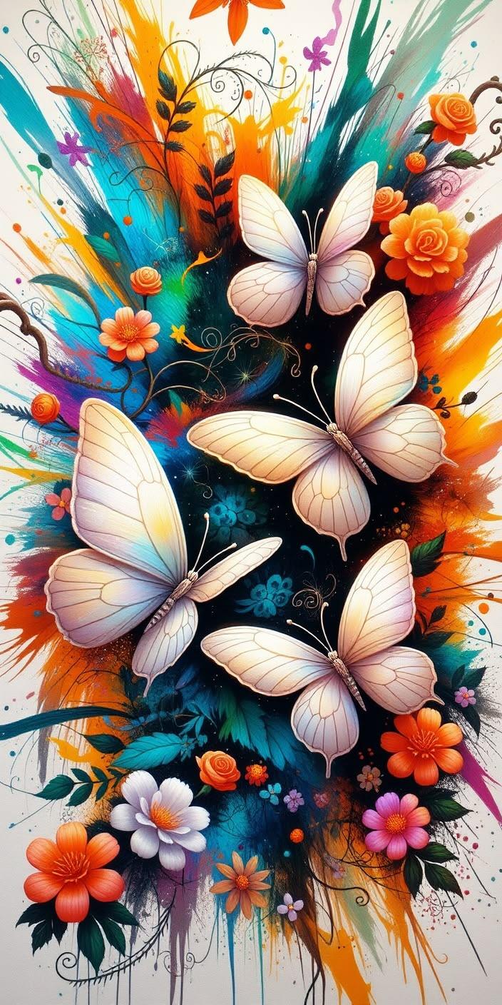 A dynamic 4K wallpaper featuring delicately detailed butterflies set against a bold explosion of bright oranges.
