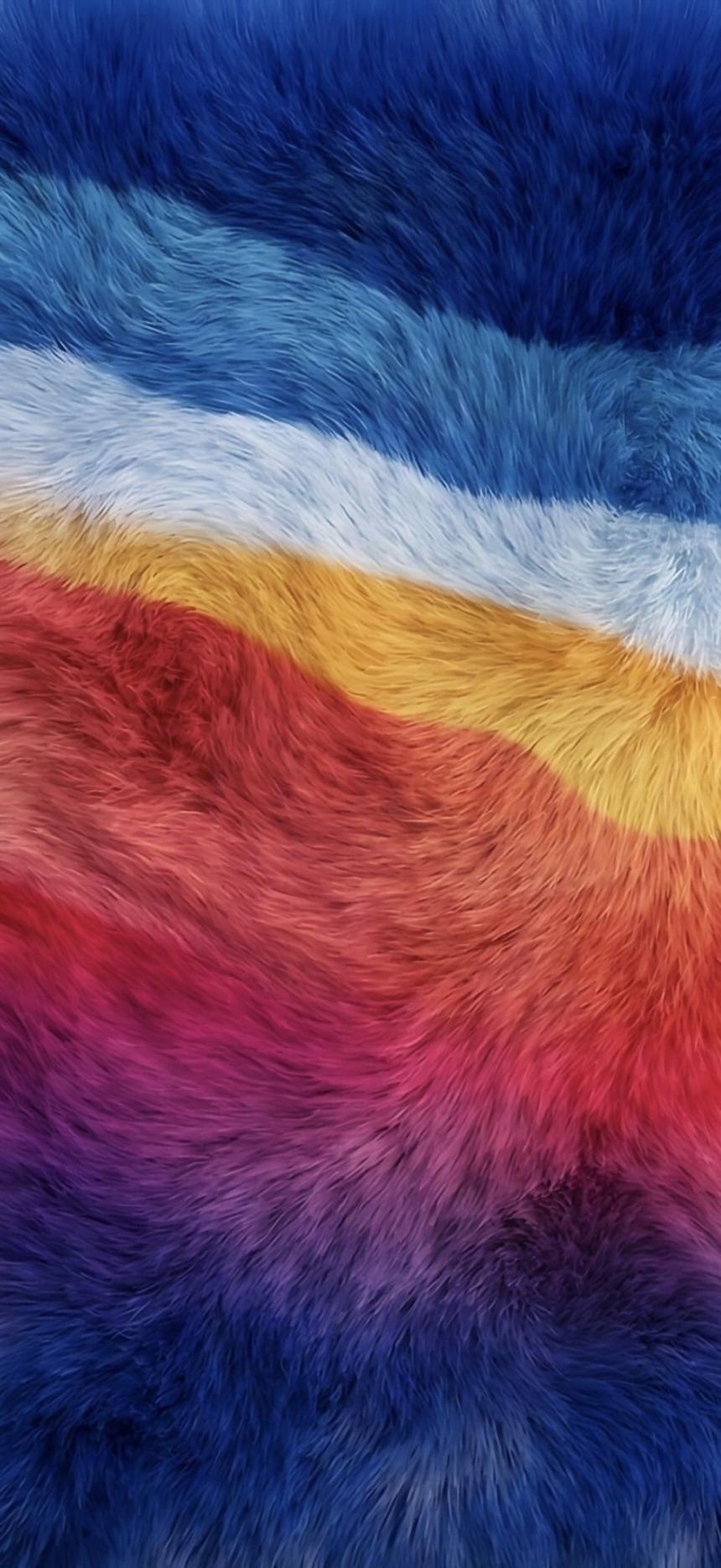 Deep blue, warm red, bright yellow fluffy texture, soft flowing gradient, cozy vibrant aesthetic wallpaper HD.
