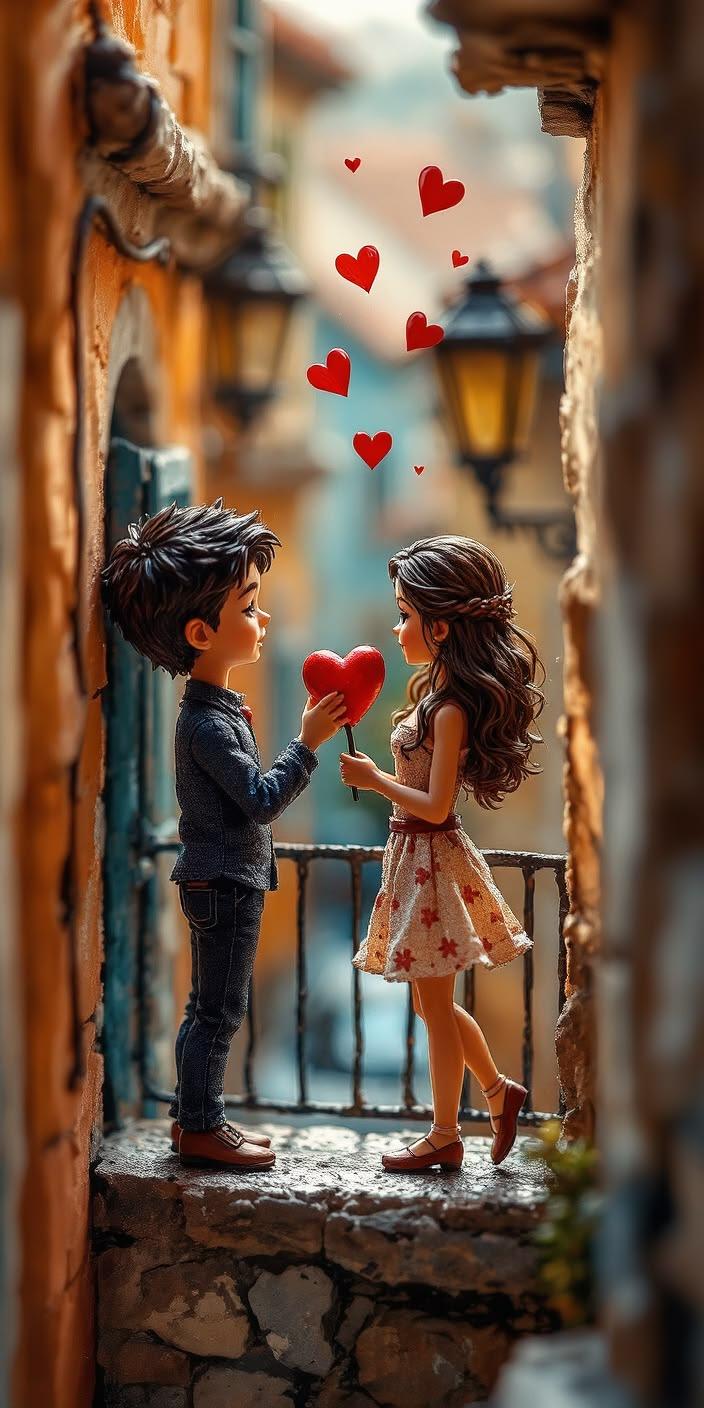 Download the Cute Love Miniature Couple Wallpaper to beautify your phone screen with this unique image. Share this wallpaper with your friends and enjoy it together.