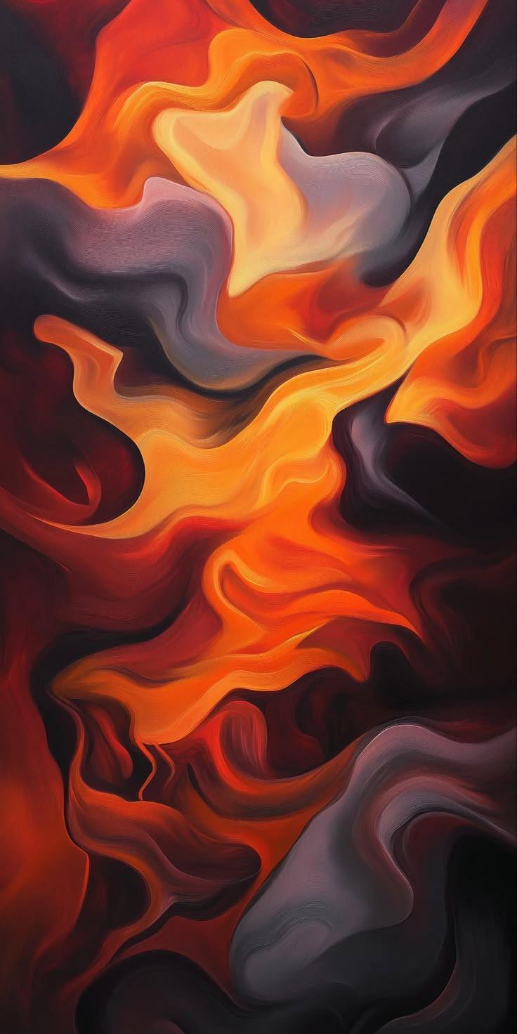 Intense abstract wallpaper with flowing red and orange forms, dramatic contrast, and dynamic energy background.