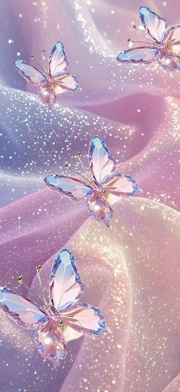 Intricate pink blue butterflies, soft lavender gradient background, sparkling details, dreamy magical aesthetic wallpaper HD.
