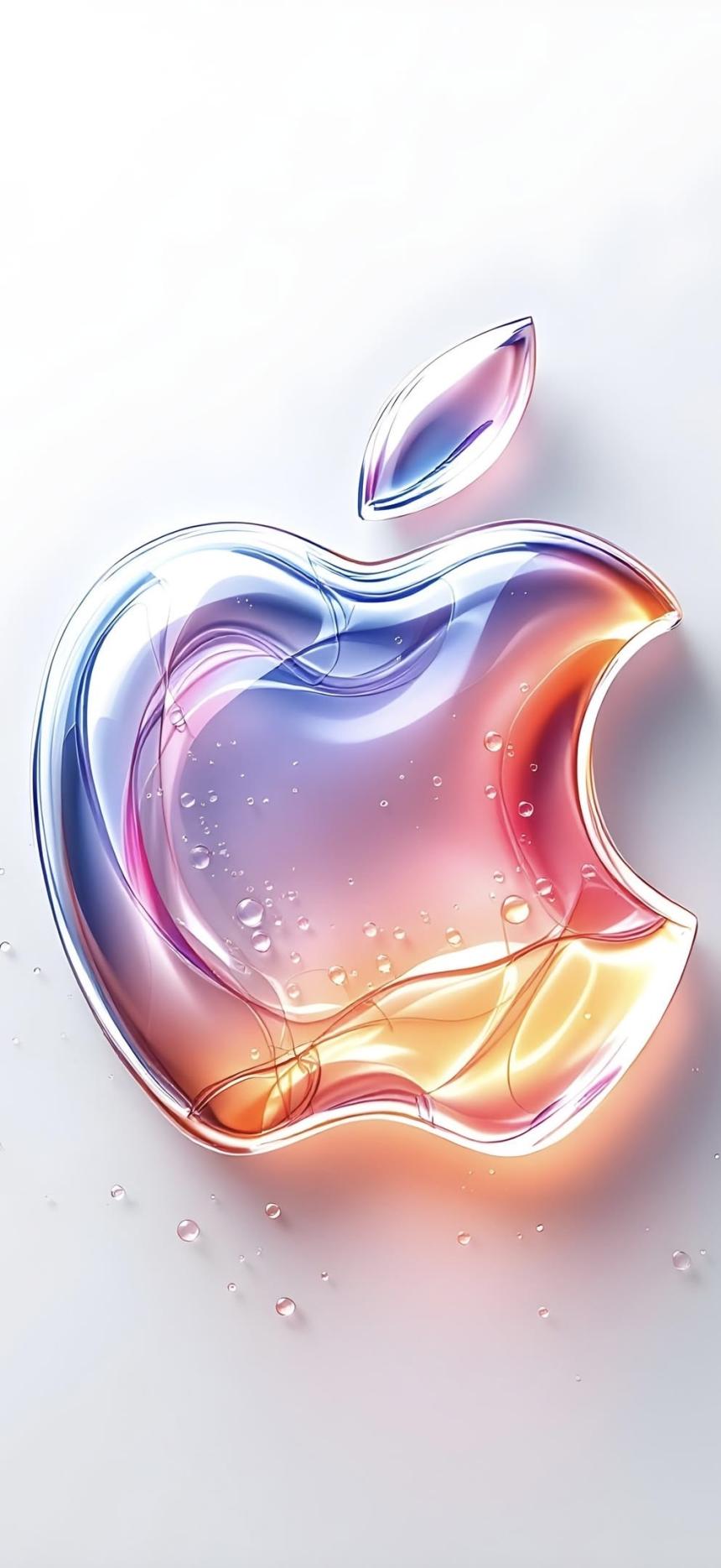 Sleek reflective logo with pink orange gradient, minimal background, water droplets, modern aesthetic wallpaper in HD.