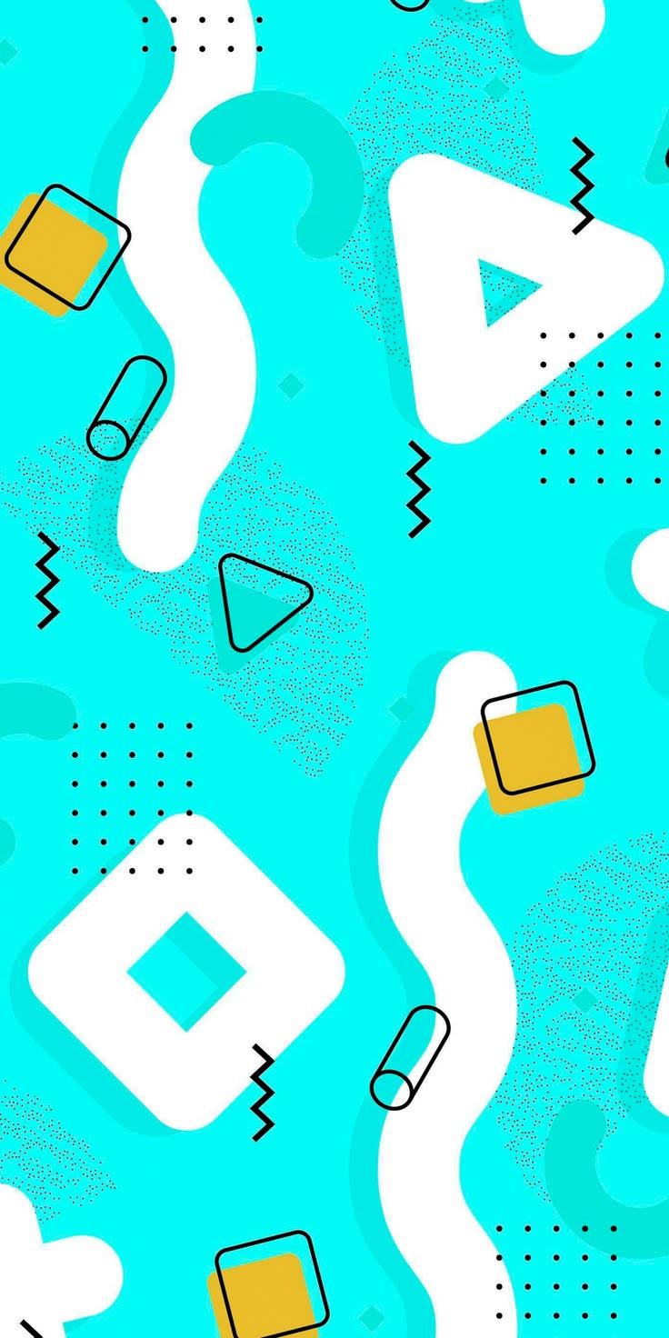 Bright turquoise background with bold geometric shapes creates playful retro pop art aesthetic.