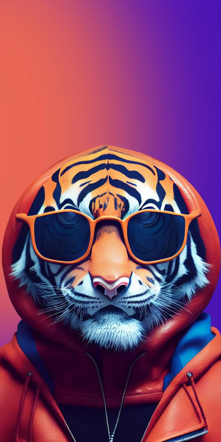 Download the Stylish Tiger Face with Sunglasses Digital Art Wallpaper for your phone screen for free and enhance your view of the world. This wallpaper is for personal use only.